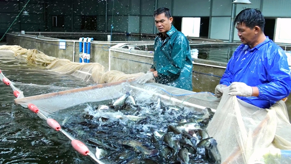贵港市鑫海水产种苗饲养演示区选用工厂化循环水高密度饲养形式,一个鱼池可育产品鱼6000至7000尾,比传统鱼塘节地80%、节水80%以上,亩产量是传统鱼塘的12倍。本年以来,演示区出售产品鱼50多万斤。