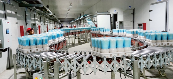 在广西汇菇源生物技术有限公司智能菇房内,水雾旋绕、蓝光映射。副总经理黄耀沿介绍,公司摒弃传统大棚栽培形式,选用液体菌种制种、工厂化立体栽培技术,每天接种25万瓶菌种、采收130吨食用菌,功率是传统形式的10倍。本年1至9月,公司出产食用菌约3万吨,产品热销广东、湖南、海南等地,并远销越南、柬埔寨等东南亚国家。